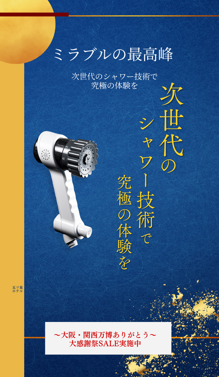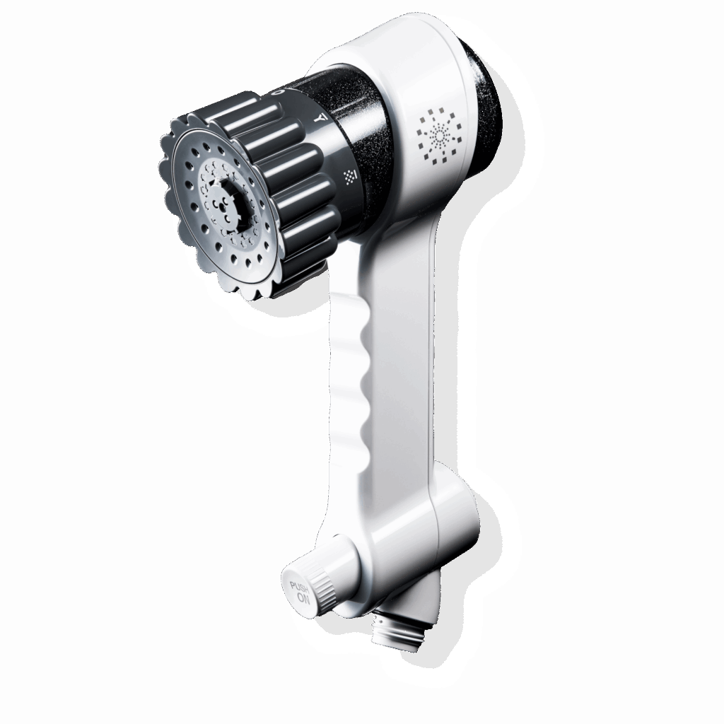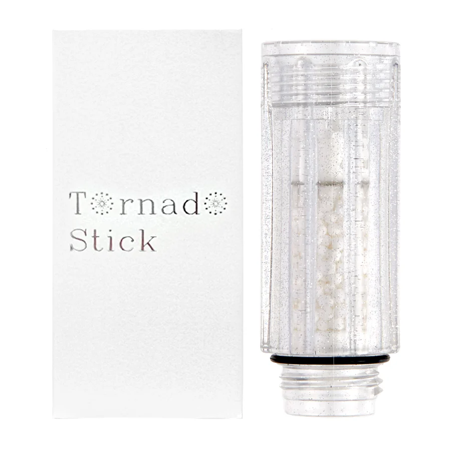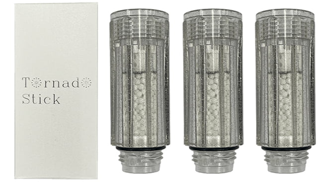 トルネードスティックを装着することで、異なるスピードのうず流を2層で作り出しファインバブルを生成。(特許-7053047)亜硫酸カルシウムフィルターが水道水の残留塩素を低減させ、肌や髪を刺激から守ります。